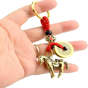 Horse Keychains Chinese New Year Horse Keyholder Feng Shui Hanging Pendants for Keys Car Bag Backpack Hanging Decor Lunar Year Zodiac Blessing Souvenir, Good Lucky Horse Charm Key Ring With 5 Feng Shui Zodiac Coins Tassel